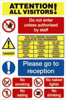 Attention All Visitors Sign. Size: 450mm x 600mm.